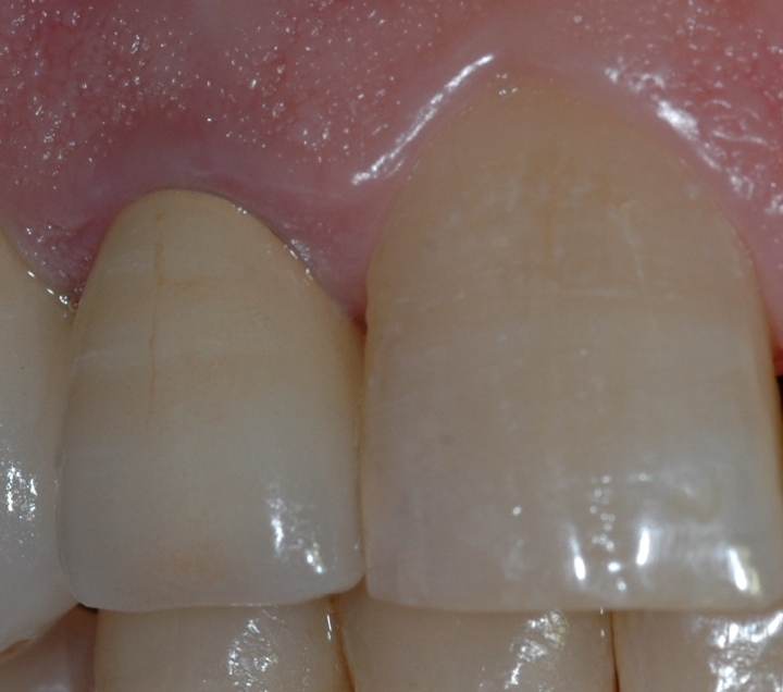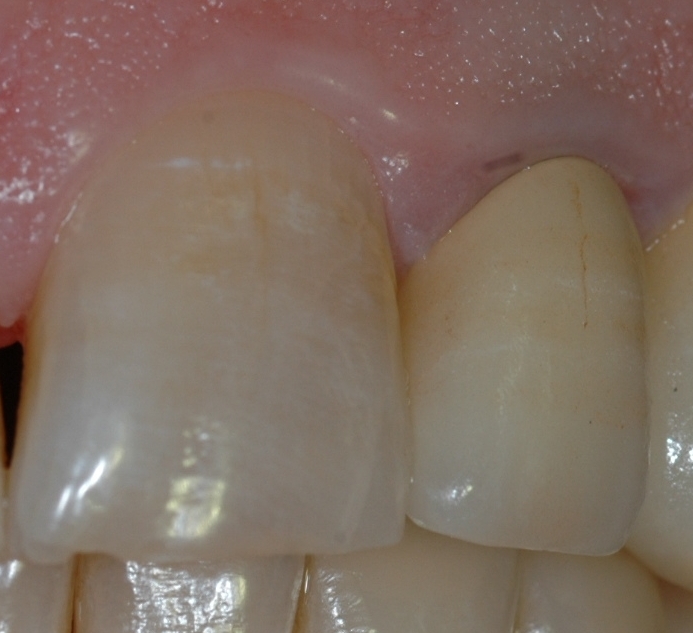 e affiora il dente naturale, non si vedono righe nere dovute agli ossidi.